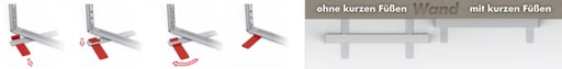 So können Sie Ihr LEDUP bei Bedarf auch platzsparend direkt an eine Wand stellen. Den Zubehörfuß einfach auf den Systemfuß schieben, Fixierung anbringen, zurückdrehen und schon kann es bis an die Wand geschoben werden.